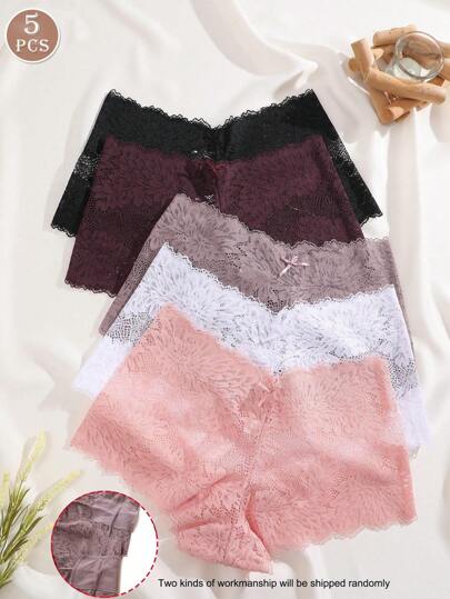 FINETOO Set Of 5 Women Lace Bowknot Pattern Mid-Waist Panties - Multicolor - View 1