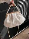 Fashionable Vintage Oiled Leather Shiny Handbag, Niche Design Rivet Hook Eyelet Women Shoulder Bag, Chic Fuzzy Patchwork Mini Clutch Purse, Suitable For Daily Use, Shopping, Dating, Gift
