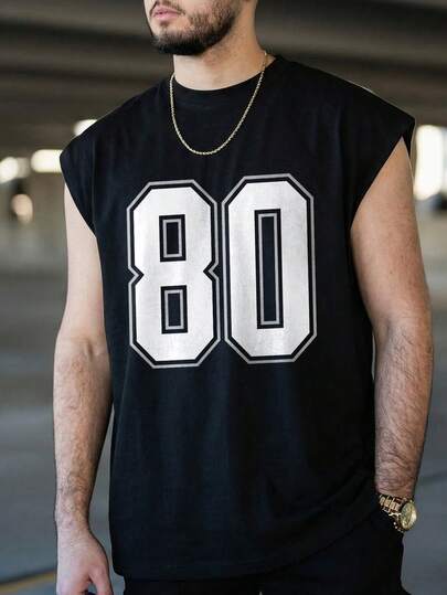 FRACTYR Men's Casual Sleeveless T-Shirt, 80 Graphic Print, Loose Fit Summer Sports Style Tank Top - Black - View 1