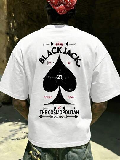 FRACTYR Men's Summer Fashion Minimalist Street Poker Heart Print Round Neck Short Sleeve T-Shirt | Basic Style Street Casual Versatile Top, Boyfriend/Husband Gift - White - View 8