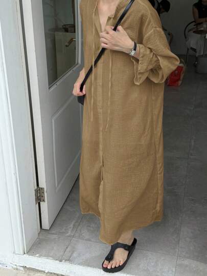 FRIFUL Women's Loose Long Blouse Sheer Jacket Long Sleeve Flare Cuff, Spring/Summer - Khaki - View 1