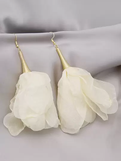Fabric Flower Drop Earrings Valentines - Beige - View 1
