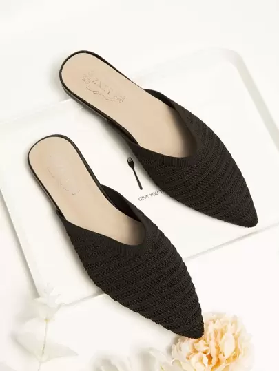 Fall/Winter Minimalist Knit Flat Mules,Lady's Black Slender Elastic Knitted Outdoor Simplistic And Elegant Flats - Black - View 1