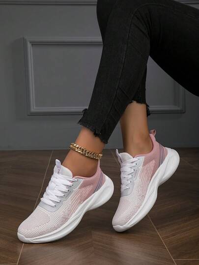 Fall/Winter Women's Casual Lace-Up Running Shoes, Non-Slip, Breathable, Comfortable, Shock-Absorbing, Suitable For Driving, Walking And Sports, Color-Blocked, All Seasons,Sneakers For Women - Multicolor - View 1