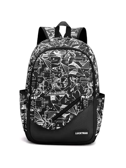 Fashion Graffiti Print Large Capacity Women's Backpack - Black - View 5
