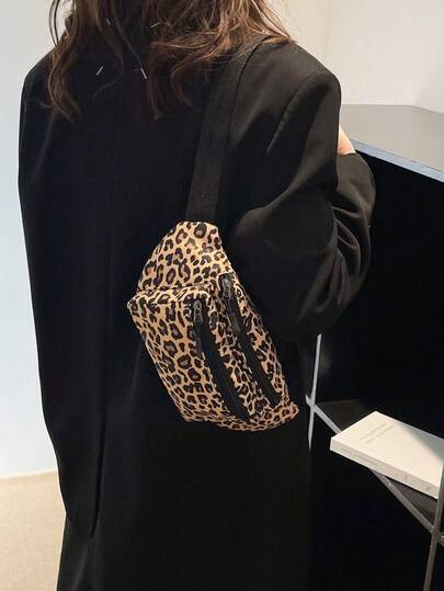 Fashion Nylon Leopard Print Waist Bag, Casual Korean Style Outdoor Sports Minimalist Waist Pack, Mobile Phone & Coin Purse Chest Bag For Women - Brown - View 1