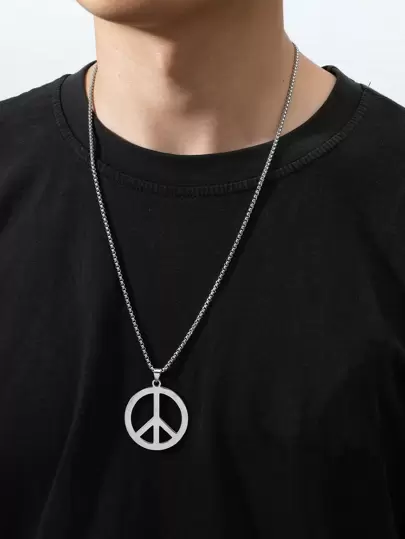Fashionable And Popular Men Love & Peace Charm Necklace Stainless Steel Punk Hip Pop Style Alloy Material For Jewelry Gift And For A Stylish Look Valentines,Mom,Mother,Mother's Day,Gift - Silver - View 1