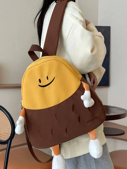 Fashionable Cartoon Pattern Backpack, Casual School Bag - Coffee Brown - View 6