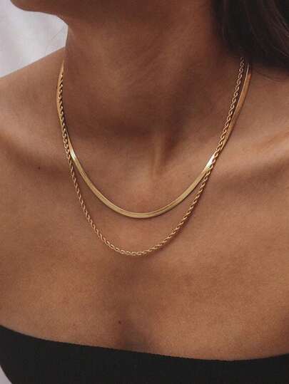 Fashionable Double-Layer Necklace Set, Twisted Chain Paired With Snake Bone Chain, Jewelry For Daily Wear And Vacation - Yellow Gold - View 1