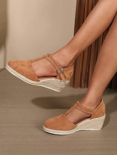 Fashionable & Elegant Casual Versatile Daily Commute Solid Color Casual Commuting Outdoor Outdoor Party Elegant Party Resort Fashion Fabric Lace-Up Women's Thick Bottom Wedge High Heel Shoes Female Shoes Autumn Shoes Flats Beach Holiday Wedding Party Home Outdoor All Season - Brown - View 1
