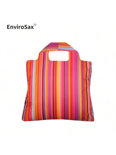 Fashionable Foldable Shopping Bag, Durable Waterproof Shoulder Bag, Gym Bag, Travel Bag, Organizing Bag (Classic Stripe Collection) - Pink - View 1