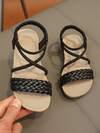 1 Pair Retro Open Toe Sandals For Kids, Summer New Fashion Breathable Slip-On Beach Shoes, Soft Bottom Anti-Slip