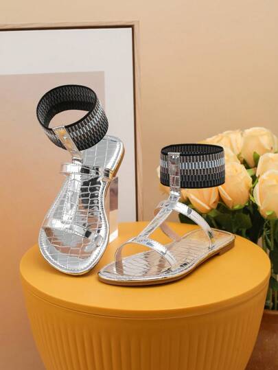 Fashionable Gold Color Flat Sandals For Parent-Child Holiday Party - Silver - View 1