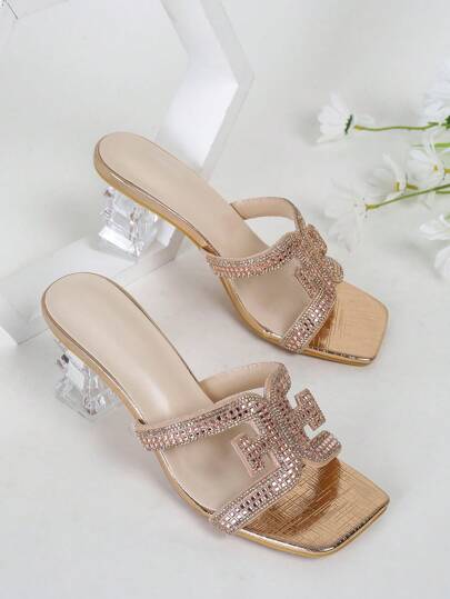 Fashionable Lady Style High-end Rhinestone Strip Shaped Heel Ladies High-heeled Sandals - Rose Gold - View 1
