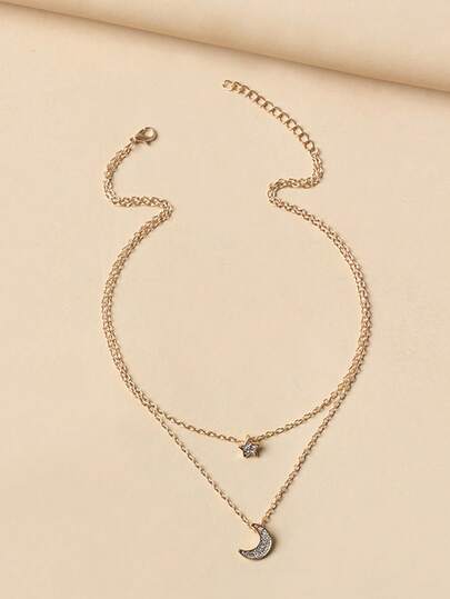 Fashionable Layered Moon & Star Necklace For Women, Delicate Minimalist Design Luxury Necklace - Star and Moon Necklace - View 1