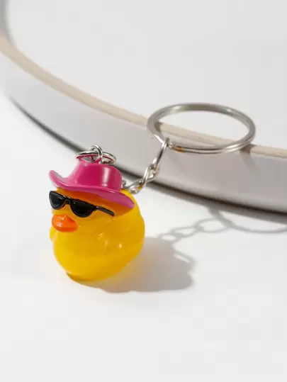 Cute Fashionable & Lovely Multicolor Duck Shaped Keychain/Bag Charm With Hat And Sunglasses, Suitable For Daily Use - Hot Pink - View 1