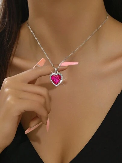 Fashionable Navy Blue Heart Pendant Necklace (Box Not Included) - Hot Pink - View 1