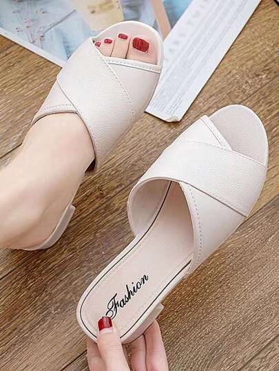 Spring/Summer Fashionable Plastic Criss-Cross Strap Thick-Heeled Slides, Suitable For Indoor And Outdoor Use - Beige - View 1