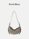 2026 New Bohemian Striped Straw Bag, Women's Casual Crescent Shoulder Bag, Lightweight Woven Saddle Bag For Travel