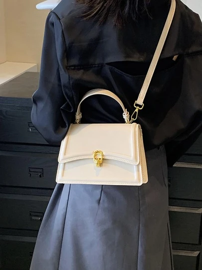 Fashionable Solid Color Women's Shoulder Crossbody Bag - Beige - View 1