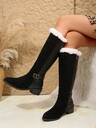 Women's Knee-High Boots, New Winter Soft Sole Anti-Slip Solid Color Side Zipper Metal Buckle Decor Comfortable Outdoor Casual Thermal Lined Thick Boots