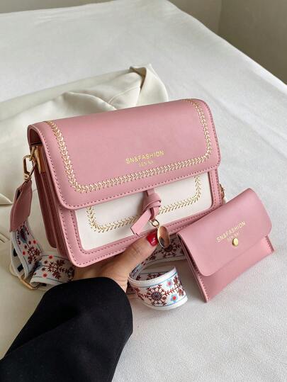 Fashionable Bag For Women, Versatile New Crossbody Bag, Casual, Color Block, Small Square Bag, Wide Strap, For Party Date School Outdoor Gift - Pink - View 1