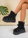 Women's Platform Lace-Up Mid-Calf Boots, Fashionable Solid Color