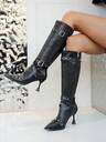 Pointed Toe Western Cowgirl Boots For Women, Stiletto High Heel Boots With Belt Buckle & Rivets, Knight Boots,Cowboy Boots