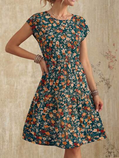 Faunlyn Ditsy Floral Waist Cinched Casual Vacation Dress,Summer Dresses