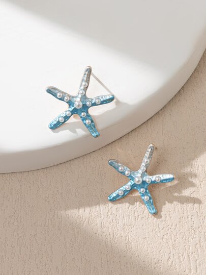 Faux Pearl Starfish Stud Earrings - Multicolor - View 1