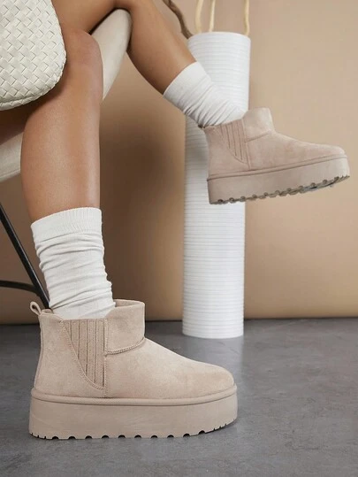 SHUZIA Women's Versatile Faux Suede Slip On Lug Sole Ankle Booties For Warm - Apricot - View 1