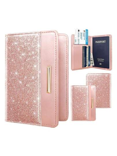 Female RFID Blocking Passport Holder, Glitter Cute Passport Wallet With Elastic Band, Travel Passport Case Travel Essentials School Back To School School Supplies Holiday Holiday Essentials Vacation Accessories Passport Cover - Multicolor - View 1
