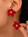 1 Pair Festive Red Flocked Bow Flocked Elegant Long Tassel Earrings, Suitable For Autumn/Winter