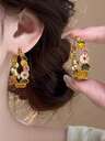 1 Pair Minimalist Luxury Geometric Vintage Earrings, Suitable For Daily Wear