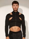FeverCity Men's Sexy Sheer Front Button Long Sleeve Lace Mesh Shirt