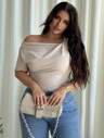 Firerie Plus Size Women Asymmetrical Shoulder Loose Metallic Flare Sleeve Shirt And Elastic Waist Wide Leg Pants Set, Suitable For Dates, Parties, Commuting, Concerts, Graduations, Teacher Outfits, Formal Occasions