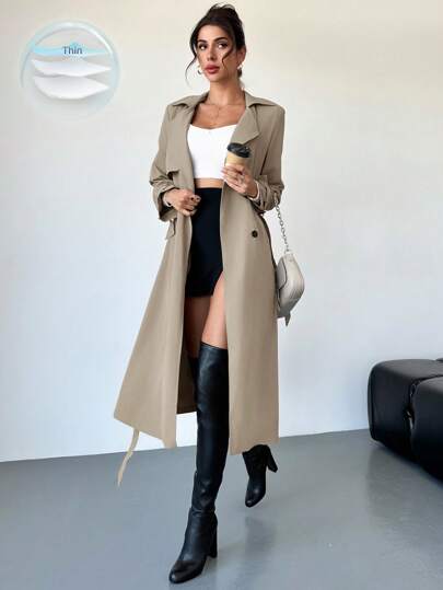 Firerie Elegant Design Cinched Waist A-Line Long Sleeve Trench Coat, Autumn/Winter - Khaki - View 8