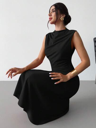 Firerie Women's Elegant Minimalist Delicate Romantic Sweet Daily Commute Wedding Party Music Festival Vacation Pleated A-Line Mini Dress, Red Camisole,Wedding Guest Dress,Elegant Dresses For Women - Black - View 2