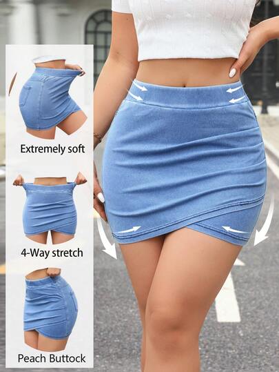 Flexra Women's Pleated Pocket Casual Versatile Daily Wear Denim Mini Skirt - Blue - View 7