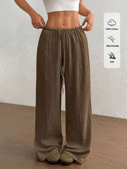 Flirla Women's Ultra Low-Rise Casual Cotton Straight Leg Pants Fall Cloth For Women - Brown - View 1