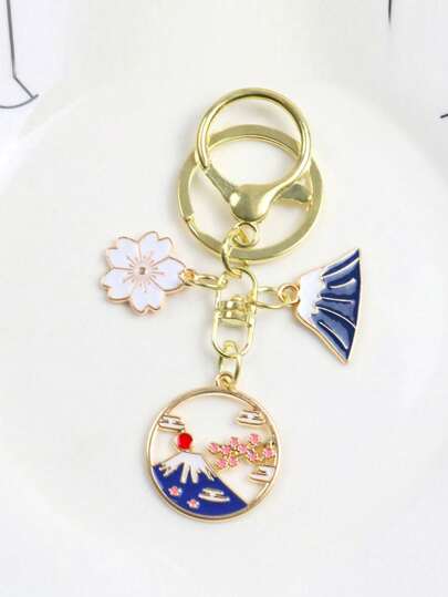 Floral & Folding Fan Design Bag Charm, Adorable Key Pendant Bag Pendant Keychain Japanese Style Bag Pendant, Feng Shui, Japanese Flower Keychain With Lucky Bag For Health, Education, Security And Wealth - Multicolor - View 1