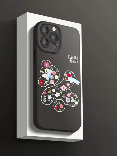 Floral Bear Phone Case - Black - View 1
