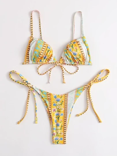Floral Graphic Bikini For Summer Beach Vacation - Multicolor - View 5