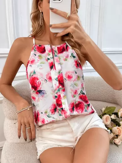 SHEIN VCAY Floral Print Cami Top - Multicolor - View 1