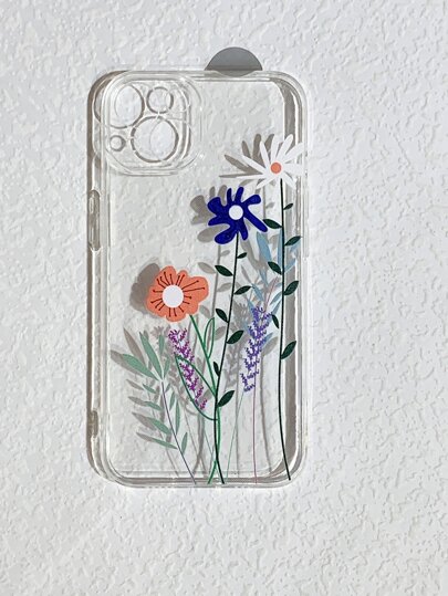 Floral Print Clear Phone Case - Multicolor - View 1