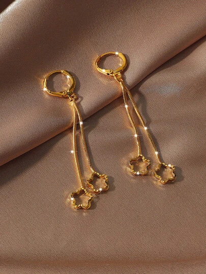 1 Pair Arabic Style Copper Gold-Plated Double-Line Pentagram Tassel Earrings, Suitable For Women's Daily Wear And Holiday Gifts - Yellow Gold - View 1