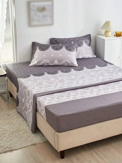 Flower Embroidery Fitted Sheet Set Without Filler - Multicolor - View 1