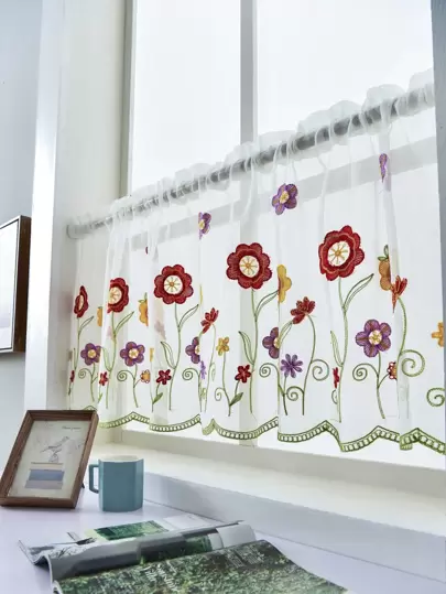 Flower Embroidery Sheer Valance - Multicolor - View 1