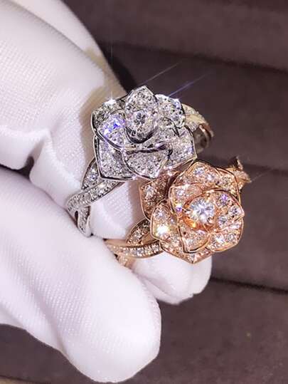 Flower Shaped Crystal & Cubic Zirconia Filled Micro-inlay Ring For Women, Suitable For Wedding - Silver - View 1