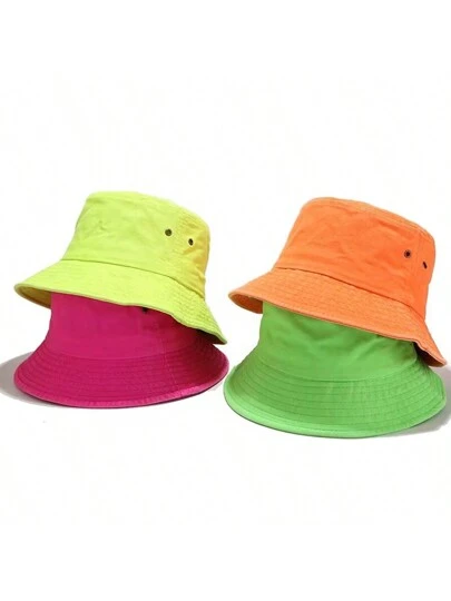 Fluorescent Simple Niche Bucket Hat, Casual Everyday WearMen's Sun Hat Summer Hat, Suitable For Summer Outdoor Activities Such As Hiking And Fishing - Solid Color - View 1